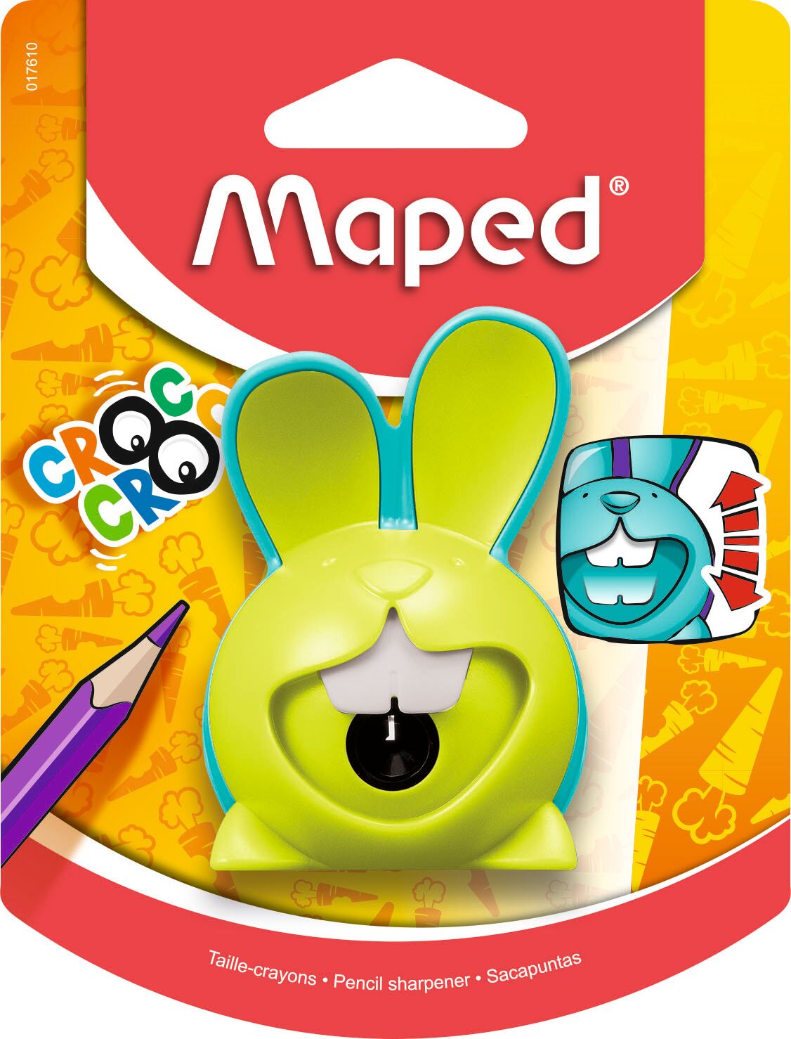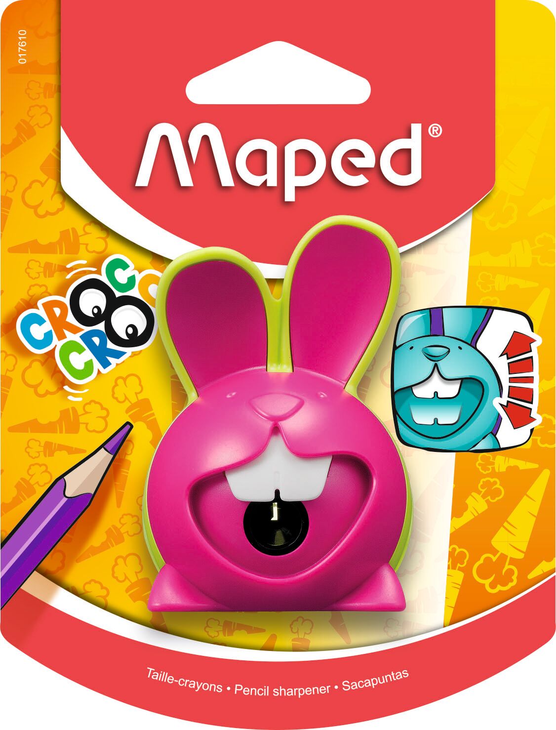 Le taille-crayons lapin Maped Croc Croc Innovation offre un design mignon et amusant aux enfants. Ce taille-crayon interactif aide les tous petits à tailler leurs crayons à papier de manière ludique. Pour indiquer à l’enfant que le crayon est tourné dans le bon sens, les dents du lapin se mettent à bouger tel un animal qui grignote !