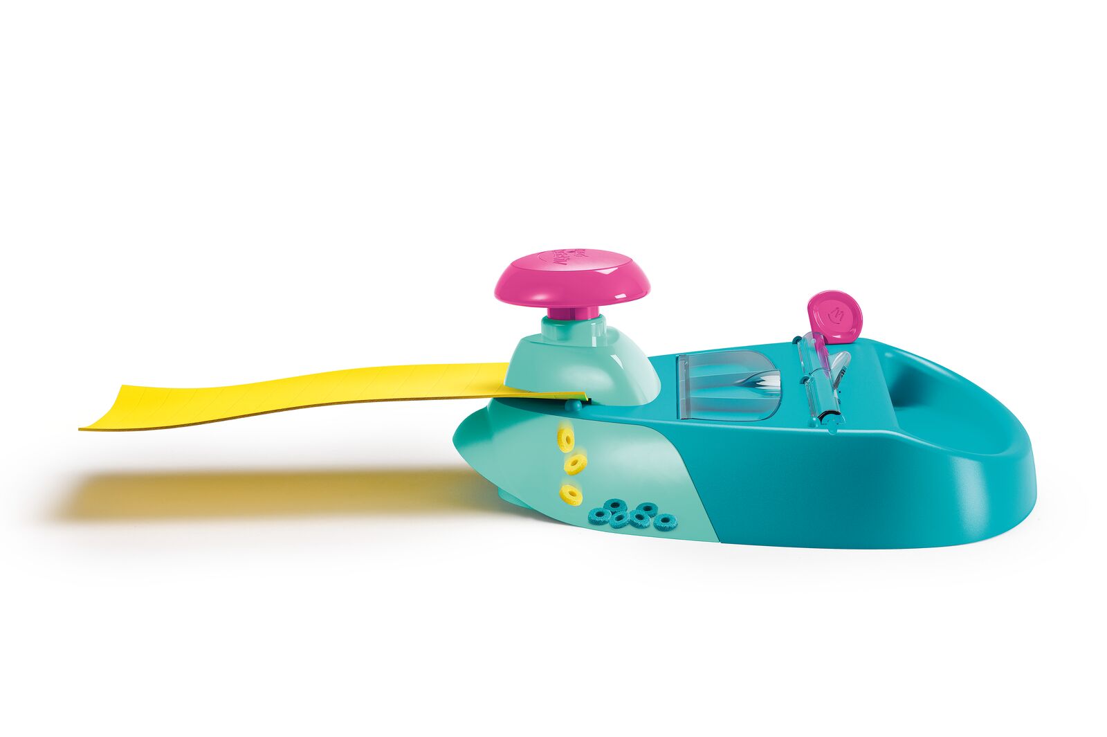 Créer des bracelets n’a jamais été aussi simple. Les enfants commencent par créer les perles en mousse (EVA) grâce à la partie avant de la machine. Ils glissent la feuille dans l’espace réservé, appuient sur le bouton poussoir et découpent des perles avec le système de perforation. Ils peuvent créer ainsi plus de 1 500 perles !