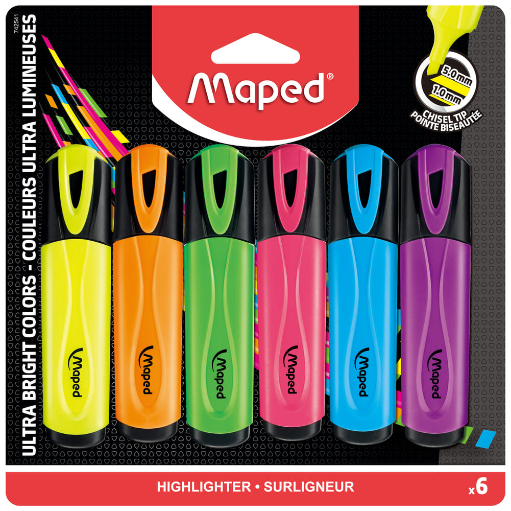 Les surligneurs Maped sont ergonomiques, ils sont agréables à prendre en main et également faciles à manier. Les surligneurs Fluo Peps ont une longue durée de vie. Les capuchons restent solidement attachés sur le surligneur. Sans son capuchon, le surligneur peut rester jusqu’à 4h à l’air libre et sera toujours efficace par la suite.